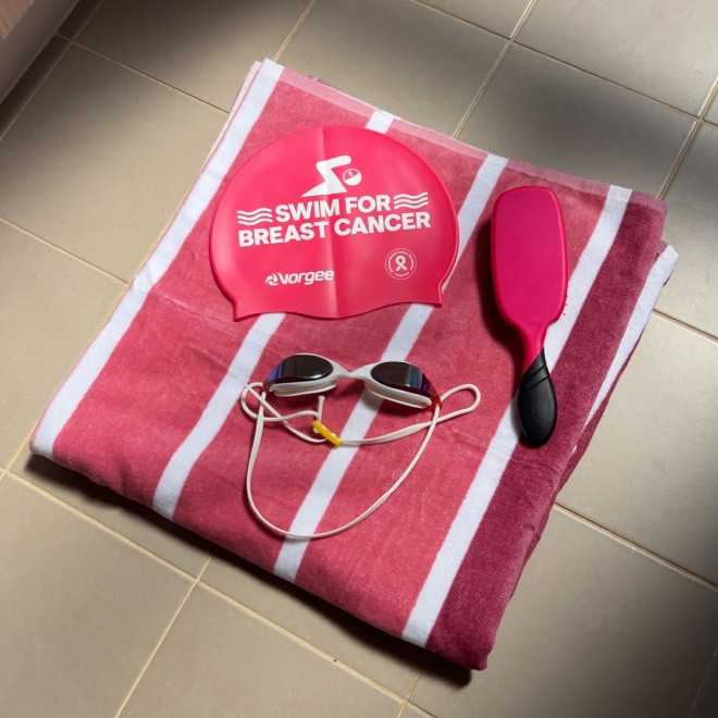 Thank you for raising money for breast cancer research! You’re a champion! Best of luck with the swimming.