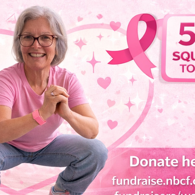 56 Australians will be diagnosed with breast cancer today and a further 9 will die. We want to make a difference to the lives of those 56 Australians impacted by the disease - that is why we are taking on the Squat Challenge to raise vital funds for world-class breast cancer research. But we need your help.