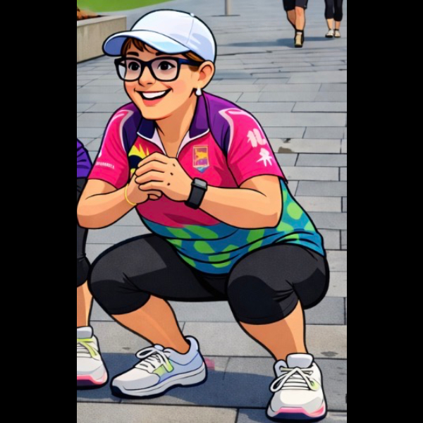 Did some squats, now waiting for her medal … or chocolate !