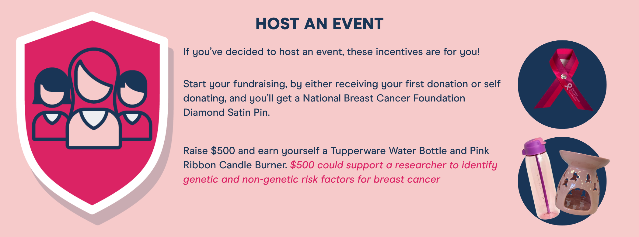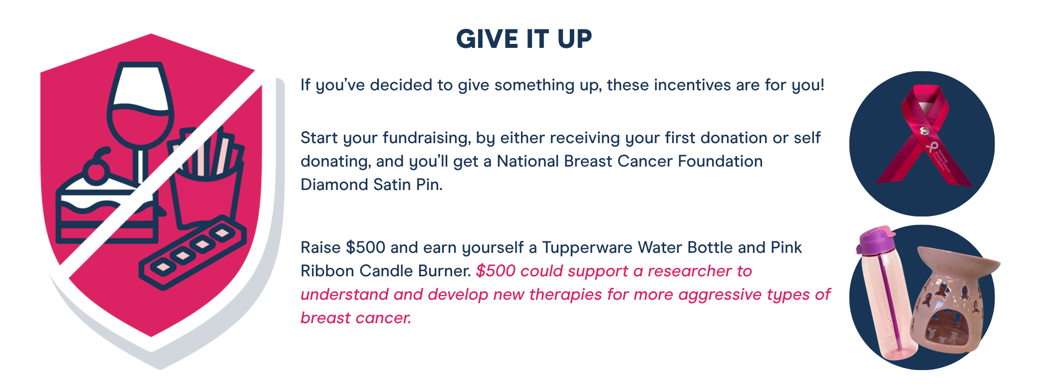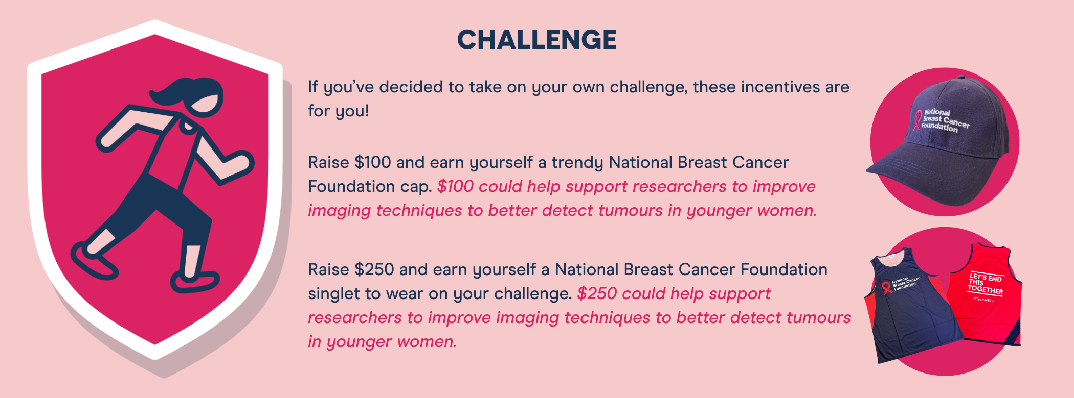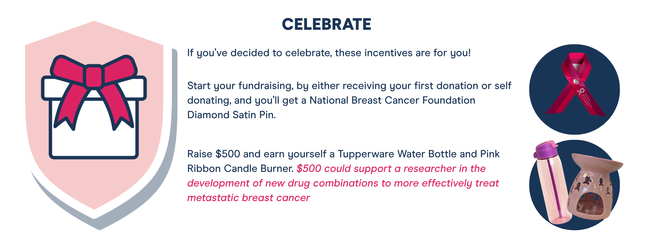 In return for your wonderful efforts, and for reaching some incredible fundraising milestones, you'll have the opportunity to claim some National Breast Cancer Foundation goodies.