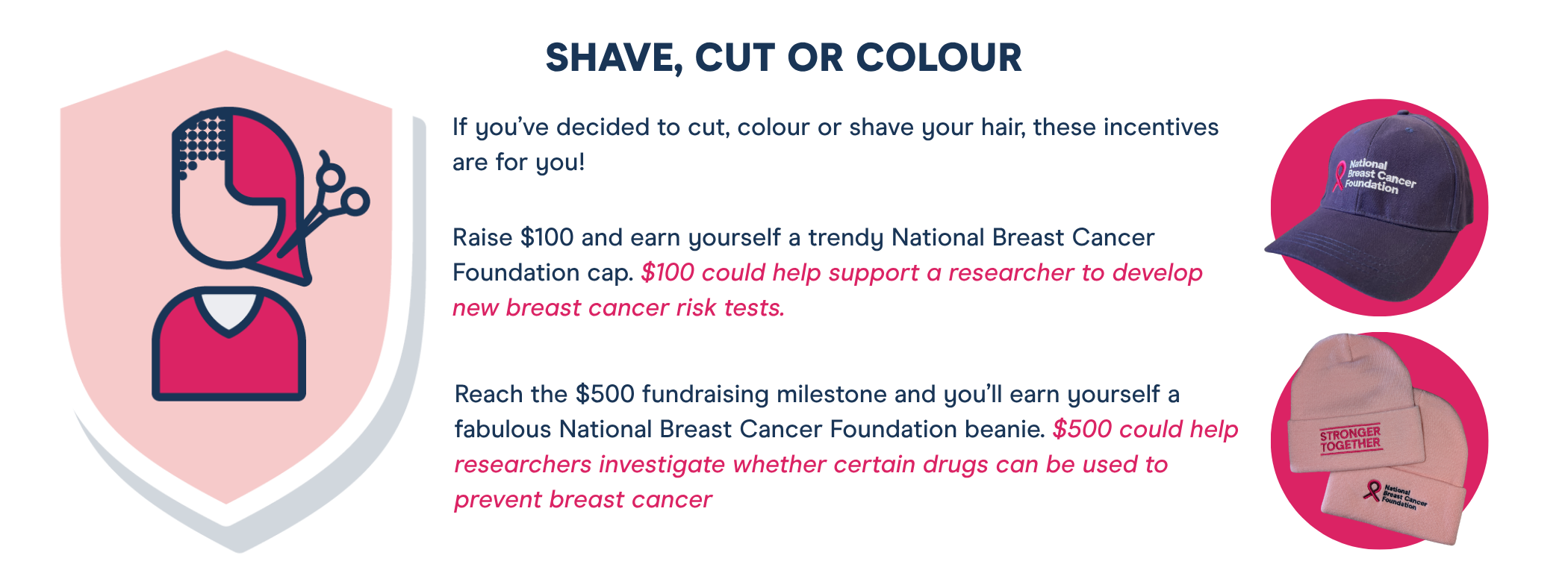Raise funds, be a Pink Hero and reach some incedible fundraising milestones. In return, we've got some amazing NBCF goodies for you! |