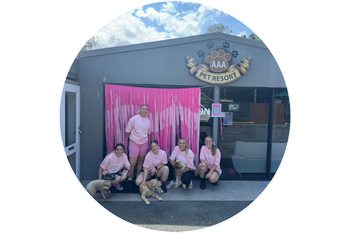 Ash and her team were inspried to host a 'Wear it Pink' day at their doggy daycare centre, after one of their colleagues was diagnosed with breast cancer. Ash believes in the comoft a dog's smile can bring!